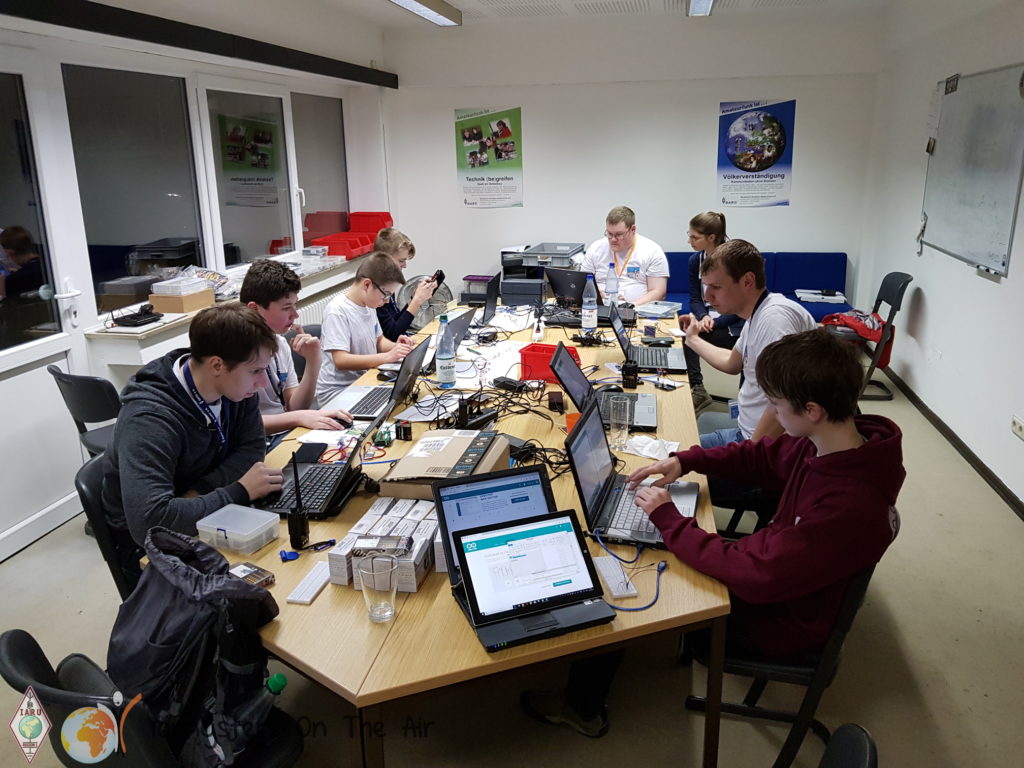 The rest of the day was explained afterwards. First, everyone who had offered a workshop should briefly introduce the content and find a suitable time slot and room for it. At the end a well filled program on the whiteboard resulted, so that everyone could get an individual overview, when the points of interest for everyone took place. At the same time DFØYOTA was activated from the tower. So there was a lot of radio work, SDRs were examined, Raspberry Pis were programmed, satellite QSOs were explained and done, DXPediton experiences were exchanged, lectures were held, (ARDF) foxes were hunted and much more! Everybody just had something to do and it definitely didn’t get boring. Due to the flexible programe everyone could pursue their own interests in amateur radio. The positive side effect was also that during the course of the day almost every one of the 60 participants talked to each other and got to know each other better.