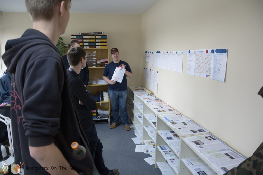 At the beginning three groups were divided which visited alternately the CQDL editor-in-chief Stefan (DH5FFL), the chief of the QSL sorting Dietmar (DL1ZAX) and in representation for the DARC management the DARC youth coordinator Gerrit (DH8GHH) and punched with questions to the respective topic areas. Thus the process of the CQDL – from the first contribution idea up to the finished CQDL -, the way of the QSL cards from our home QTH over Baunatal up to the receiver and the individual coworkers and their tasks in the DARC were presented.