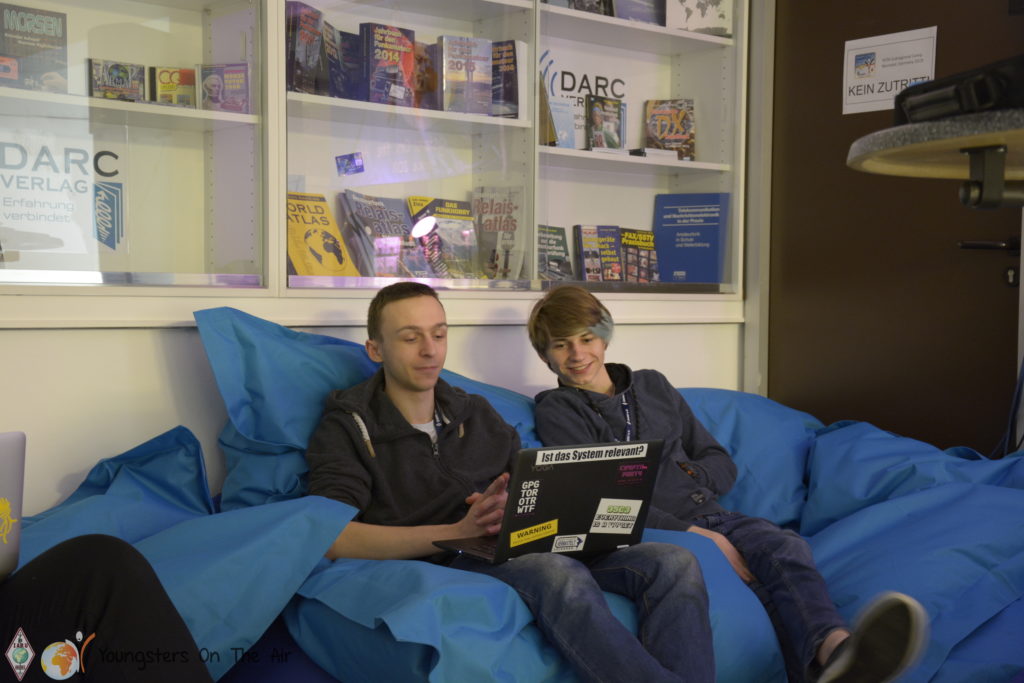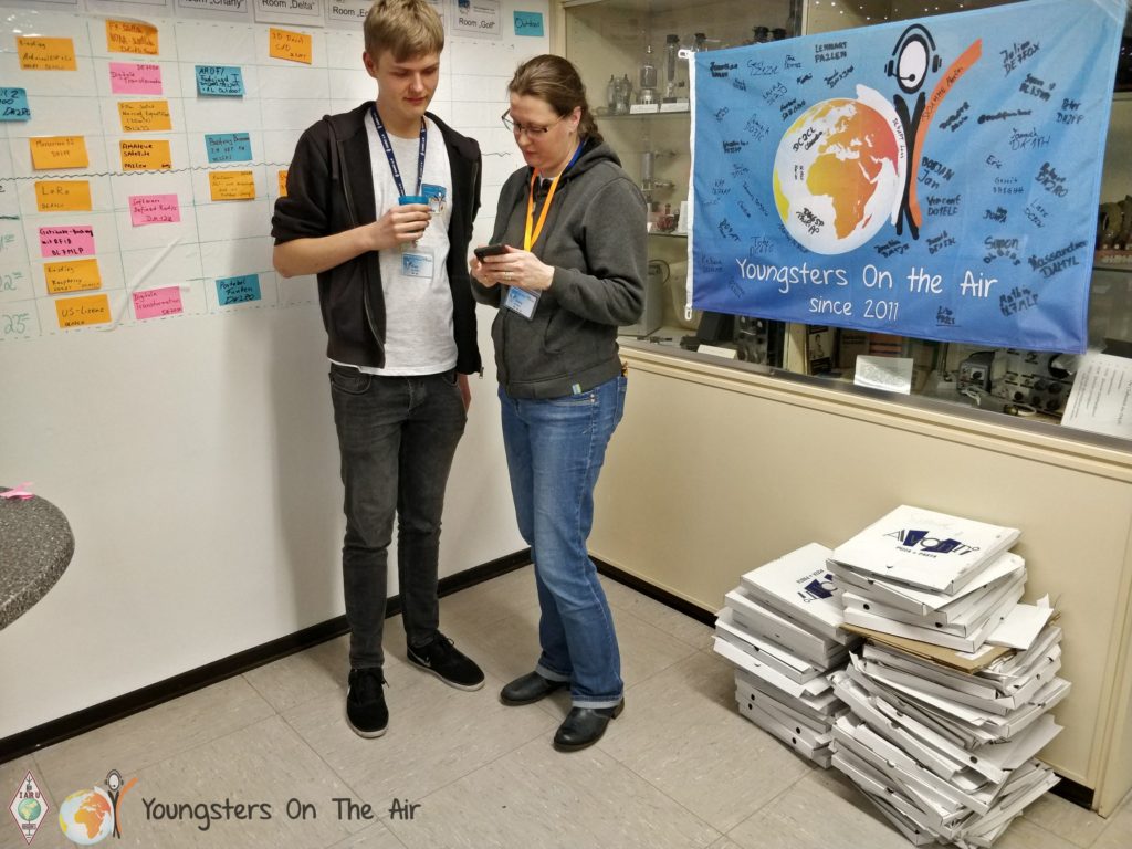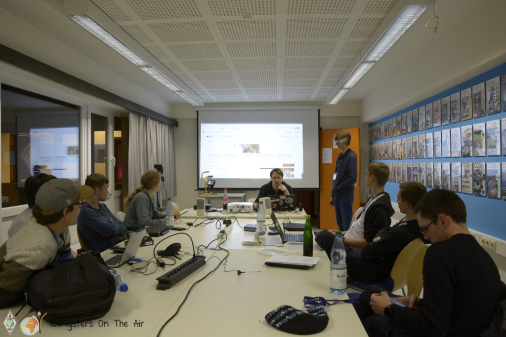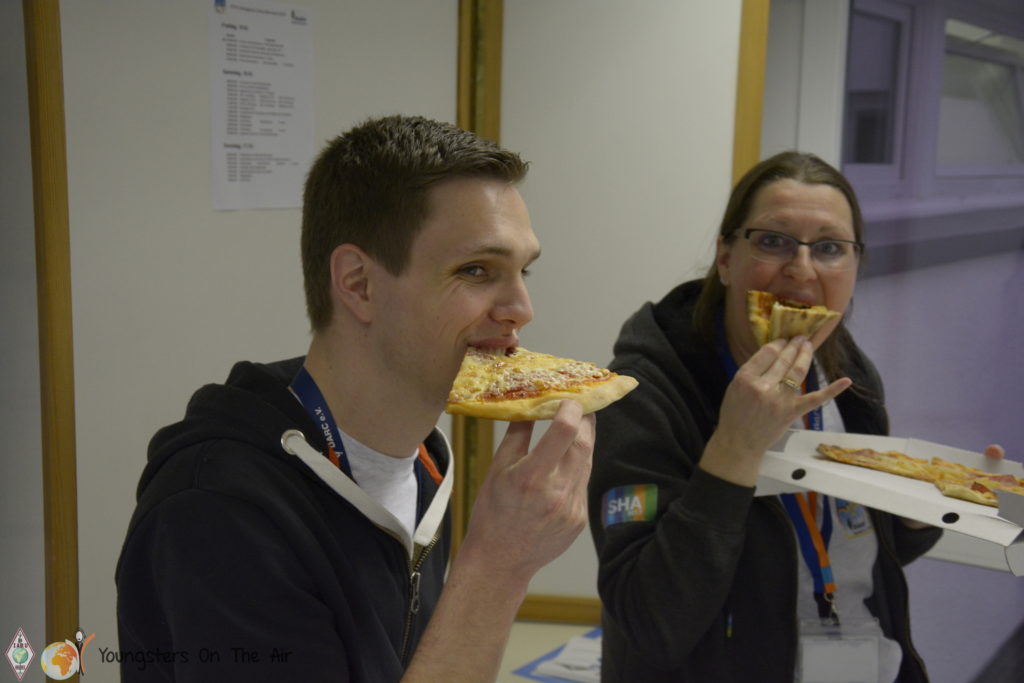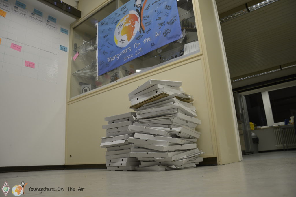 Pizzas were delivered to the amateur radio centre just in time for dinner afterwards. So every youngster found something to his/her taste. Moreover, the evening continued freshly fortified and we let the day pass in review together. Everyone returned to the hotel with a smile on their faces. Unfortunately the departure from the YOTA Subregional Camp is scheduled for tomorrow … but more in the next report.
