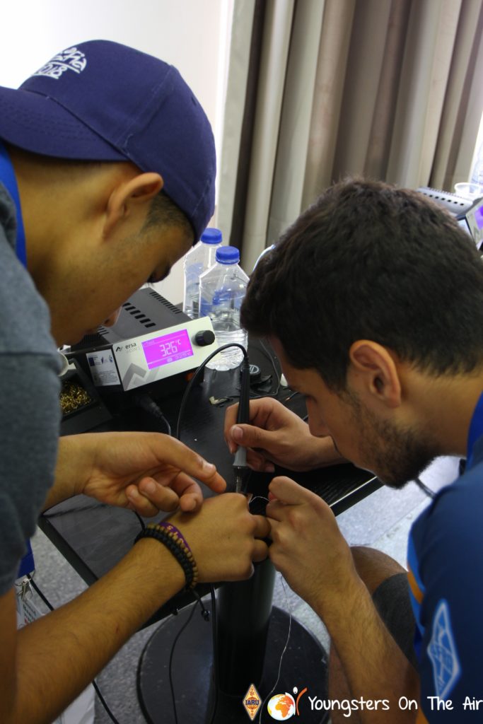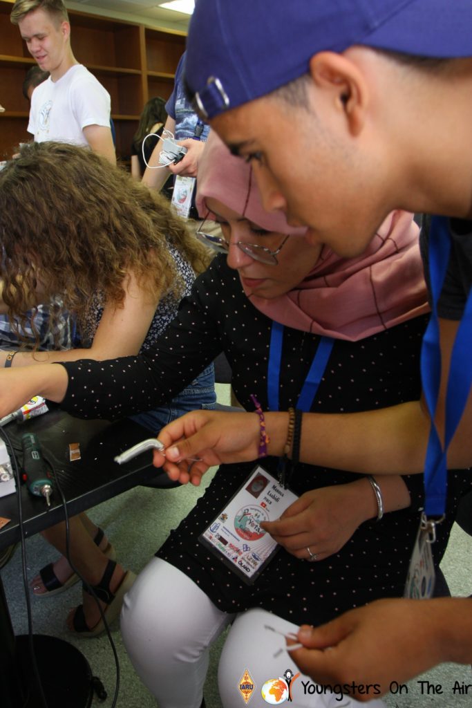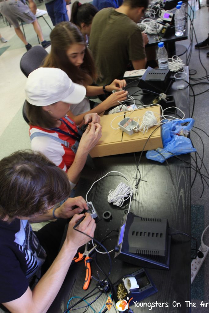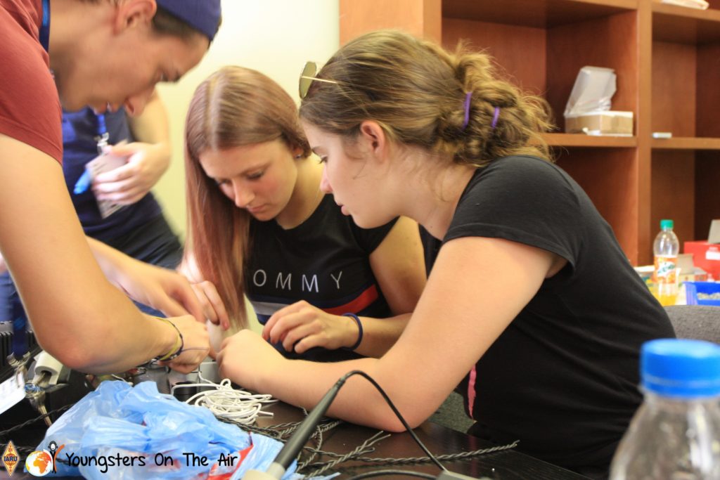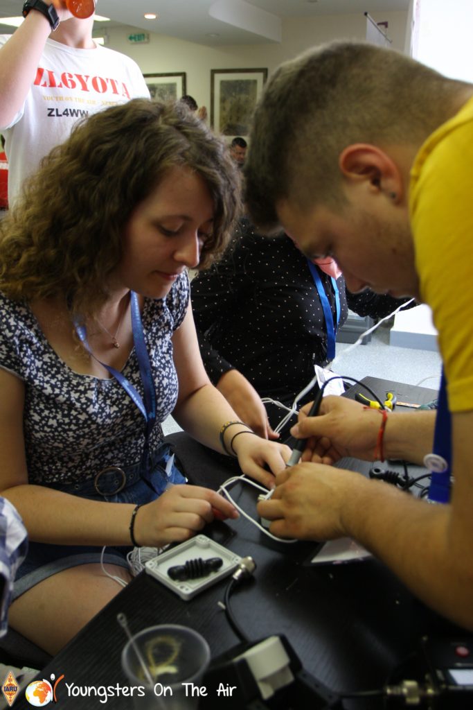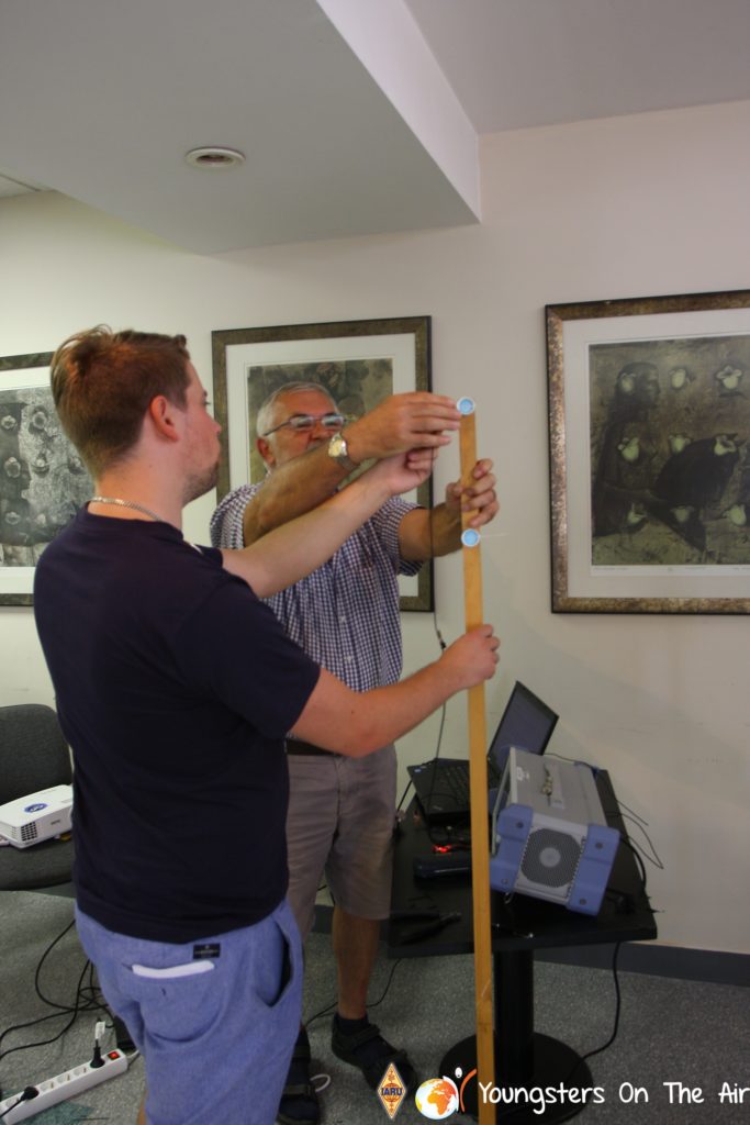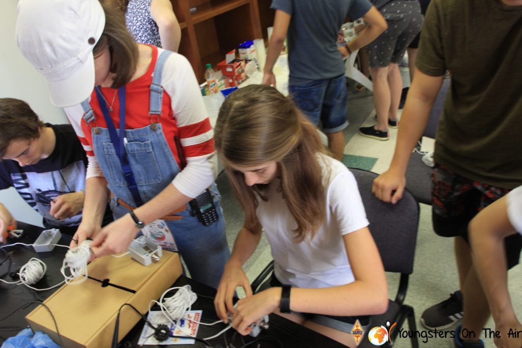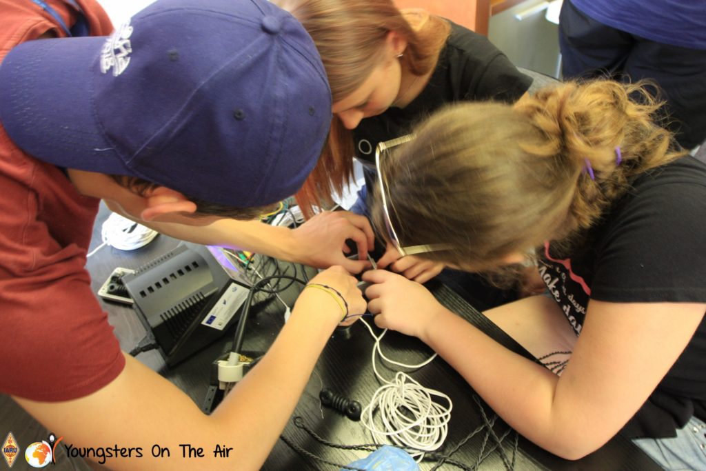 The last full day of the 2019 YOTA summer camp began with the last session of teams presenting the youth activities they have done in the last year and their plans for the next year. For the morning workshop the teams were split into two groups again, whilst one group built a vhf antenna and learnt about the theory behind it, the other learnt about ropes and knots and practiced a number of useful knots, fore example for putting up antennas at field days . After lunch the hands on workshops were continued with building an HF antenna, as before the youngsters also learnt about the theory behind how this antenna works. The wire dipole for the 20 metre band is a great tool for field days, SOTA activations and more. Furthermore this antenna enables a lot of youngsters who do not have access to other antennas to get on the air from their home. Combining the theory with hands on building made it very interesting and more intuitive.