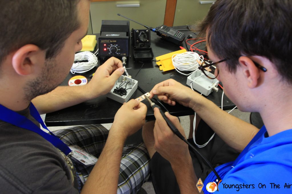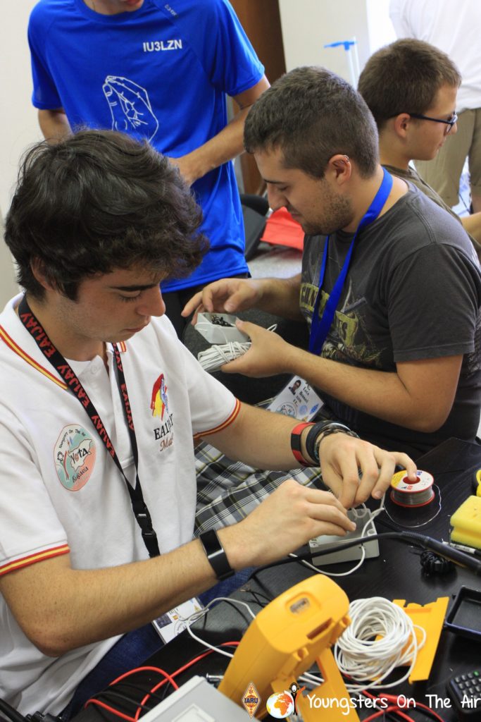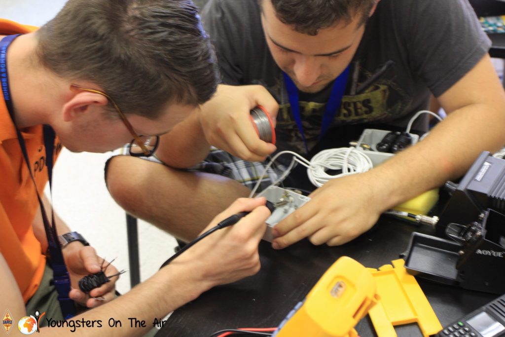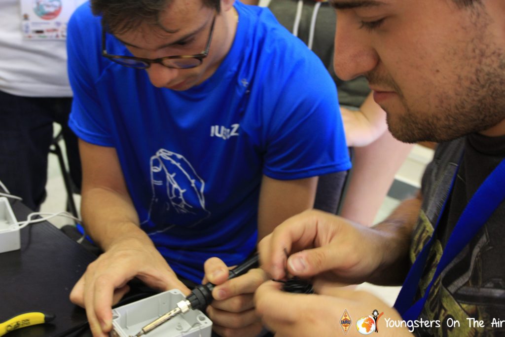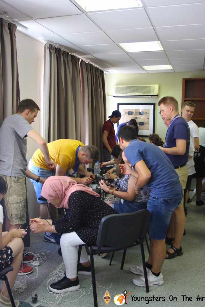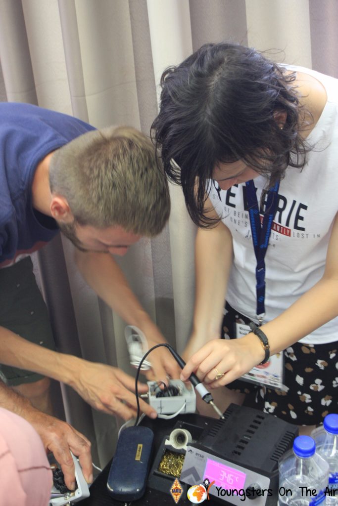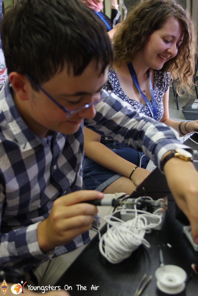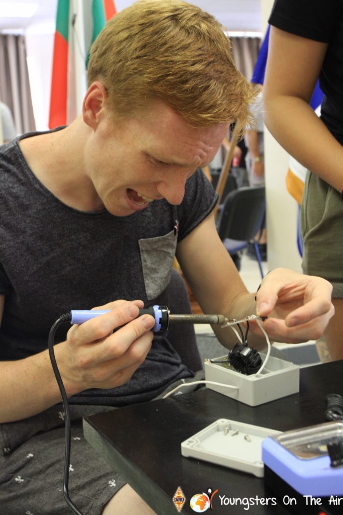The last full day of the 2019 YOTA summer camp began with the last session of teams presenting the youth activities they have done in the last year and their plans for the next year. For the morning workshop the teams were split into two groups again, whilst one group built a vhf antenna and learnt about the theory behind it, the other learnt about ropes and knots and practiced a number of useful knots, fore example for putting up antennas at field days . After lunch the hands on workshops were continued with building an HF antenna, as before the youngsters also learnt about the theory behind how this antenna works. The wire dipole for the 20 metre band is a great tool for field days, SOTA activations and more. Furthermore this antenna enables a lot of youngsters who do not have access to other antennas to get on the air from their home. Combining the theory with hands on building made it very interesting and more intuitive.
