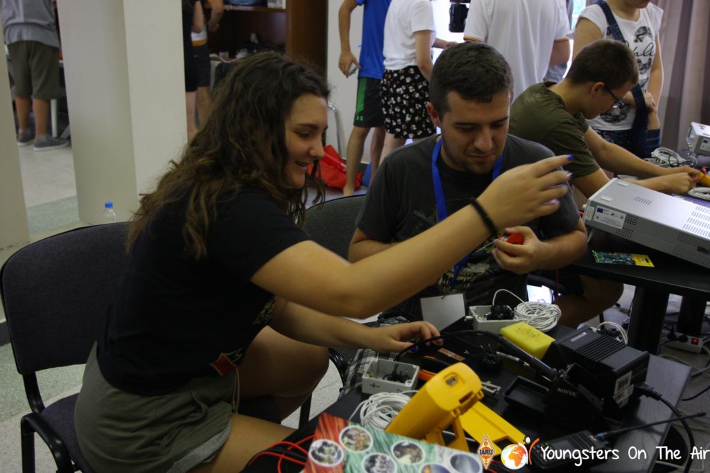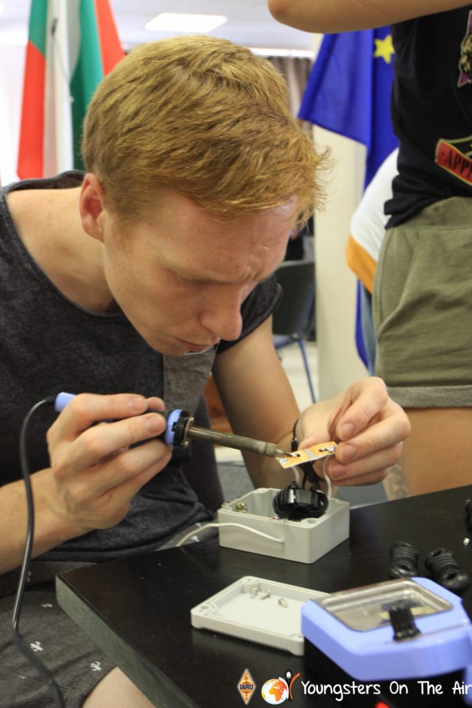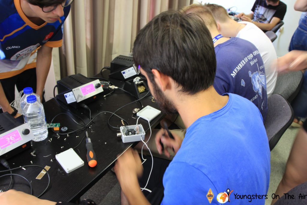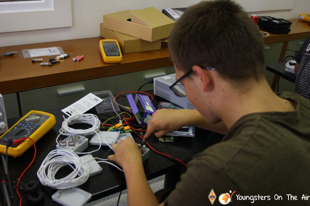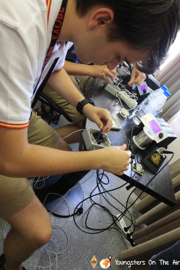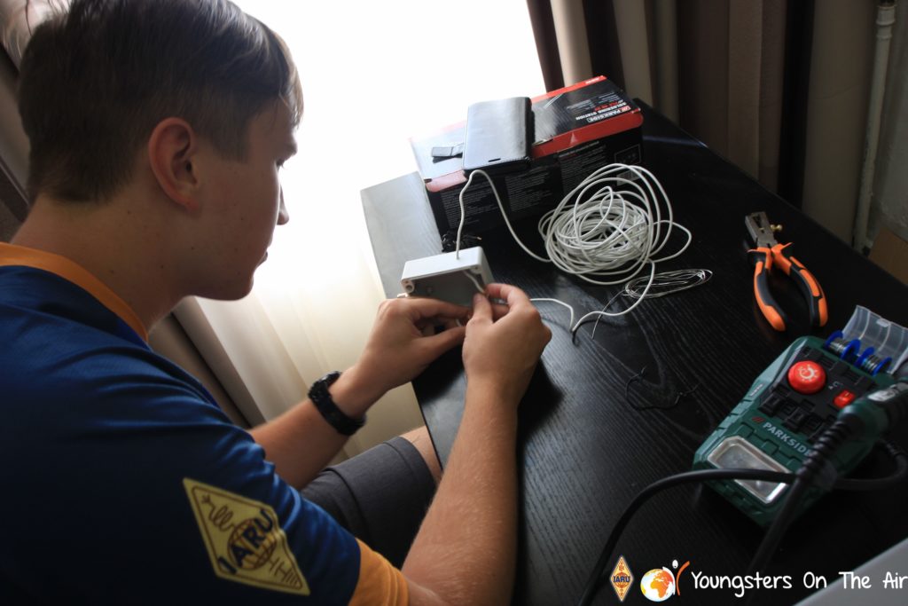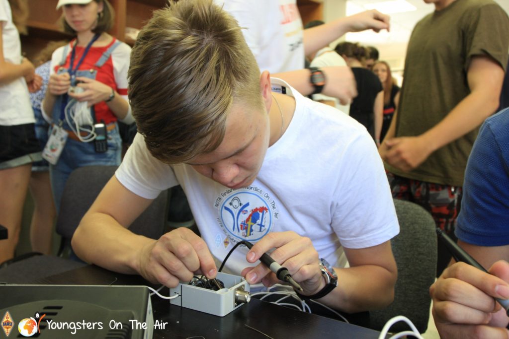 The last full day of the 2019 YOTA summer camp began with the last session of teams presenting the youth activities they have done in the last year and their plans for the next year. For the morning workshop the teams were split into two groups again, whilst one group built a vhf antenna and learnt about the theory behind it, the other learnt about ropes and knots and practiced a number of useful knots, fore example for putting up antennas at field days . After lunch the hands on workshops were continued with building an HF antenna, as before the youngsters also learnt about the theory behind how this antenna works. The wire dipole for the 20 metre band is a great tool for field days, SOTA activations and more. Furthermore this antenna enables a lot of youngsters who do not have access to other antennas to get on the air from their home. Combining the theory with hands on building made it very interesting and more intuitive.