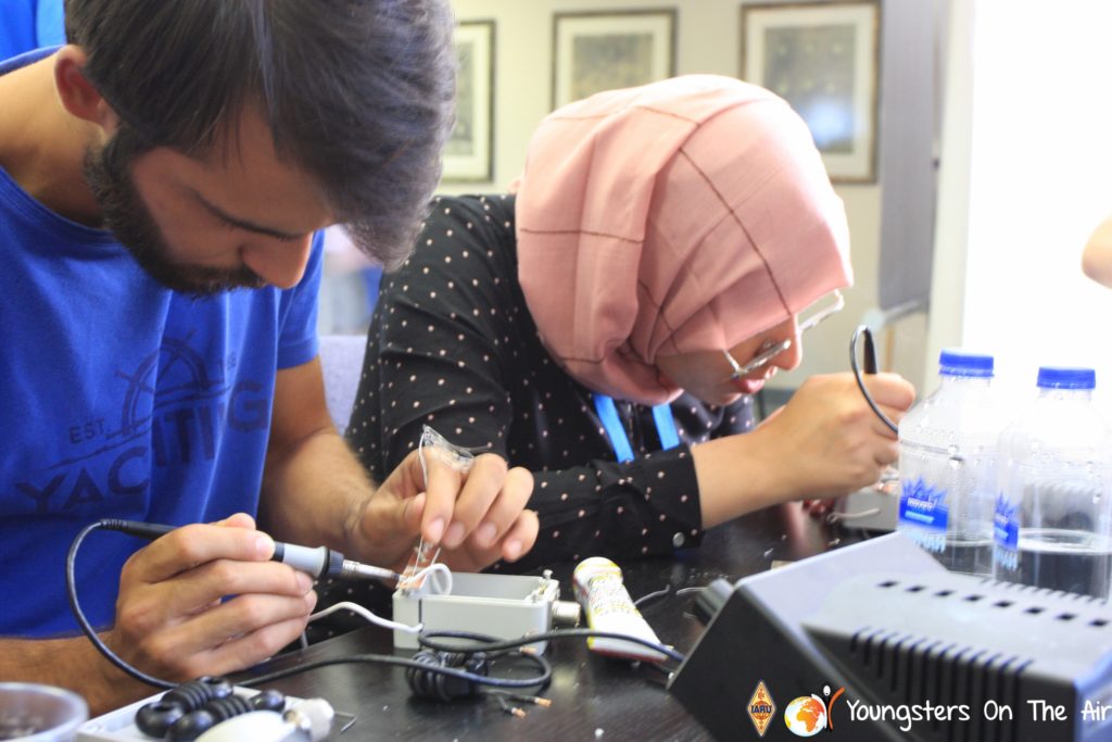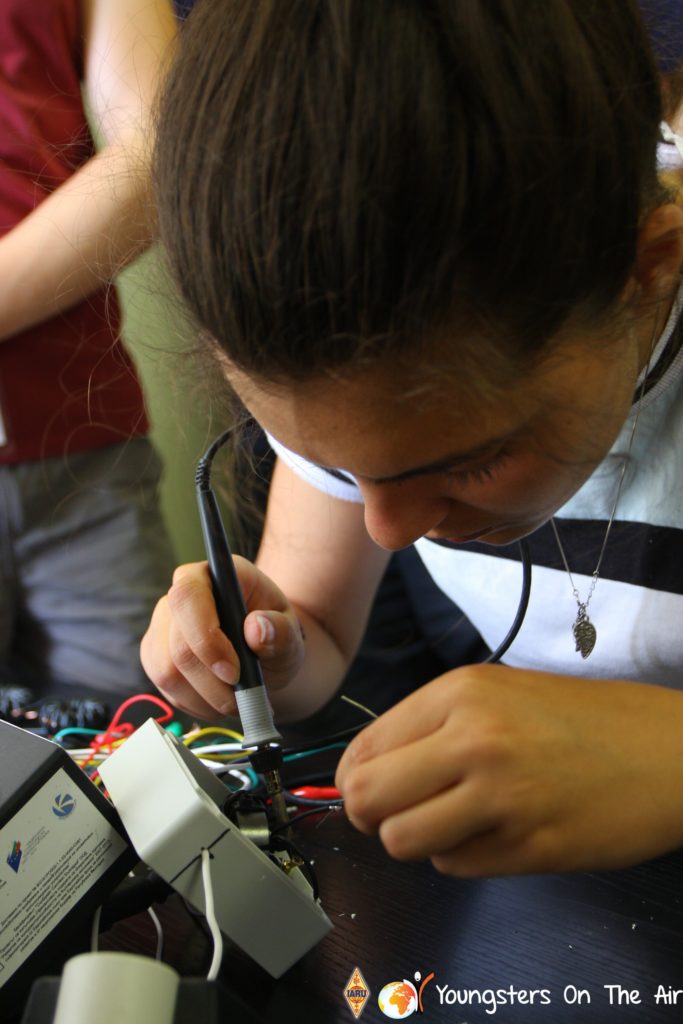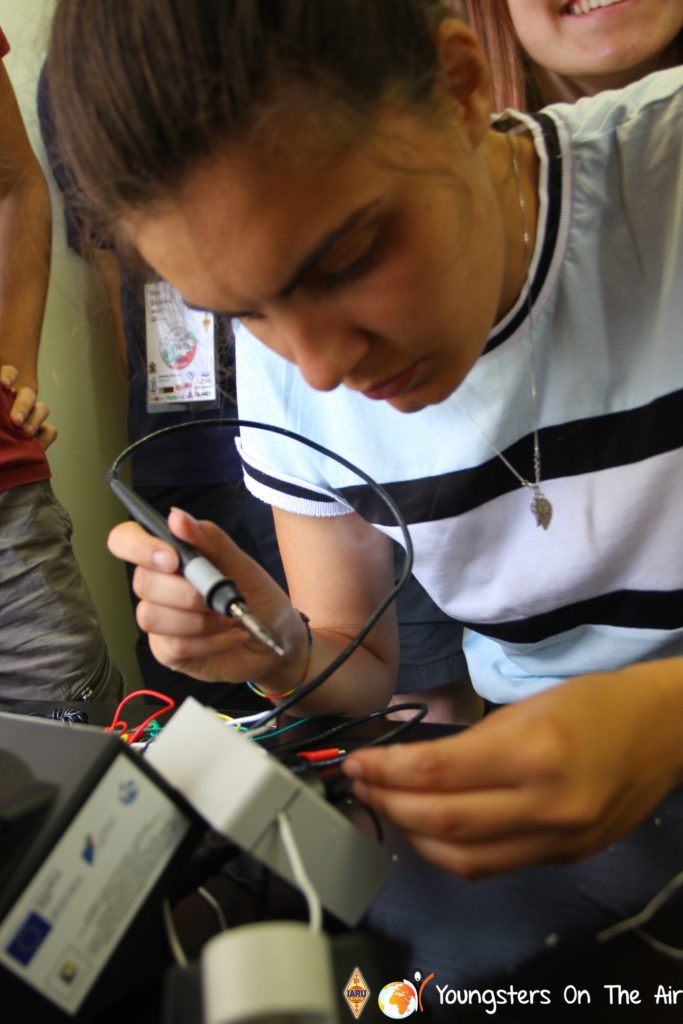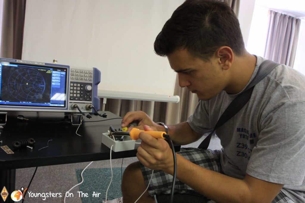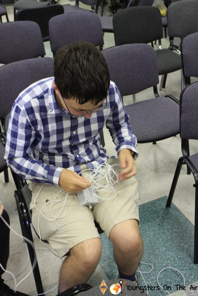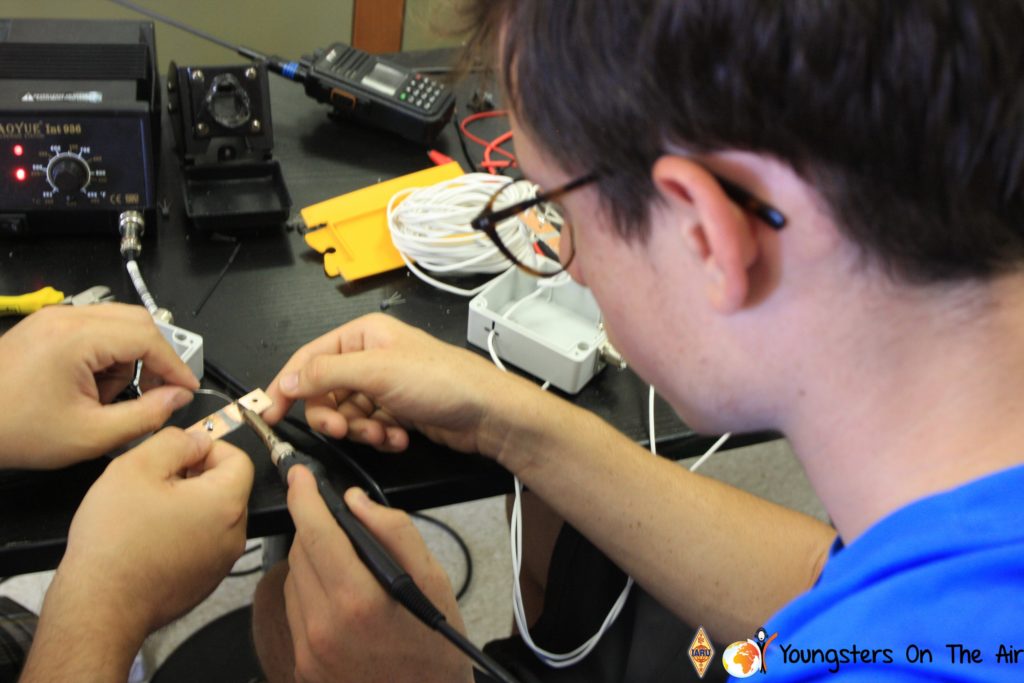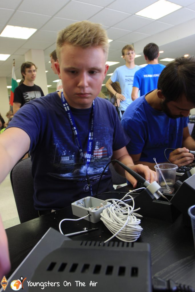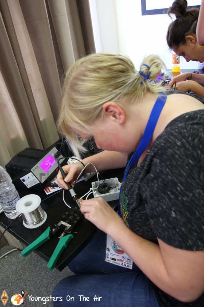 The last full day of the 2019 YOTA summer camp began with the last session of teams presenting the youth activities they have done in the last year and their plans for the next year. For the morning workshop the teams were split into two groups again, whilst one group built a vhf antenna and learnt about the theory behind it, the other learnt about ropes and knots and practiced a number of useful knots, fore example for putting up antennas at field days . After lunch the hands on workshops were continued with building an HF antenna, as before the youngsters also learnt about the theory behind how this antenna works. The wire dipole for the 20 metre band is a great tool for field days, SOTA activations and more. Furthermore this antenna enables a lot of youngsters who do not have access to other antennas to get on the air from their home. Combining the theory with hands on building made it very interesting and more intuitive.