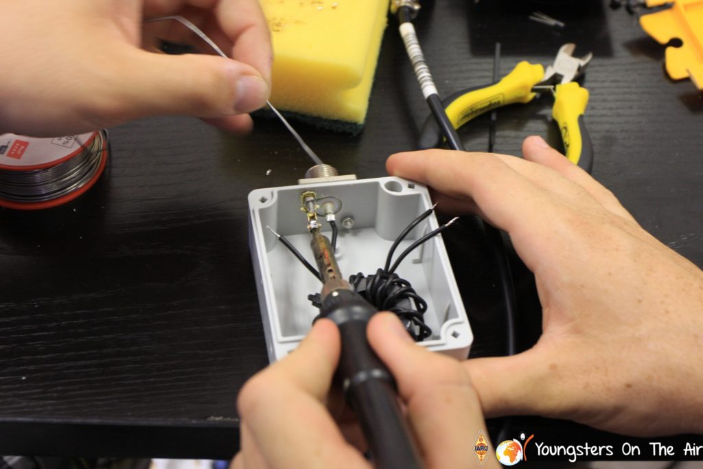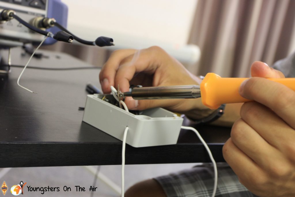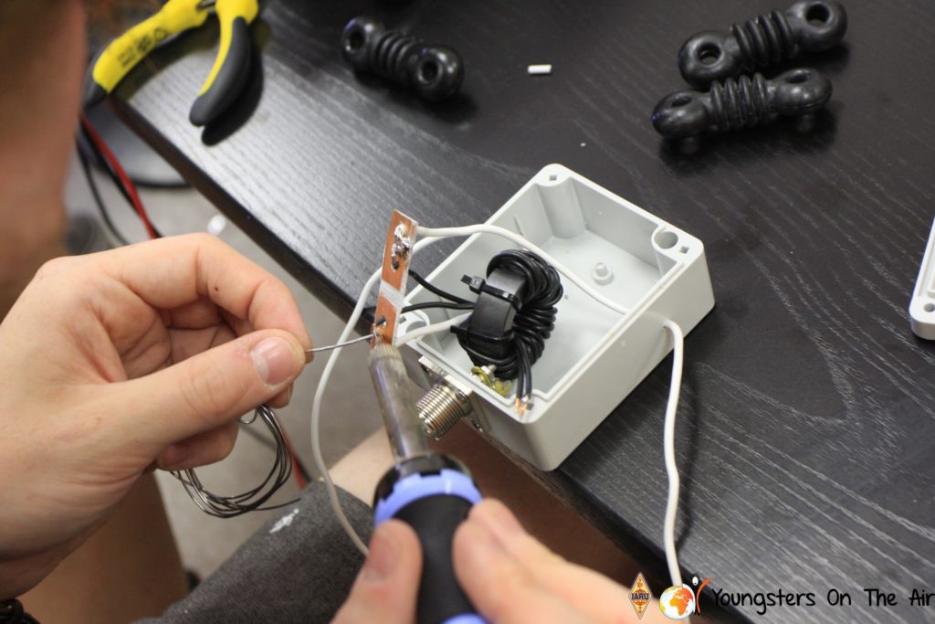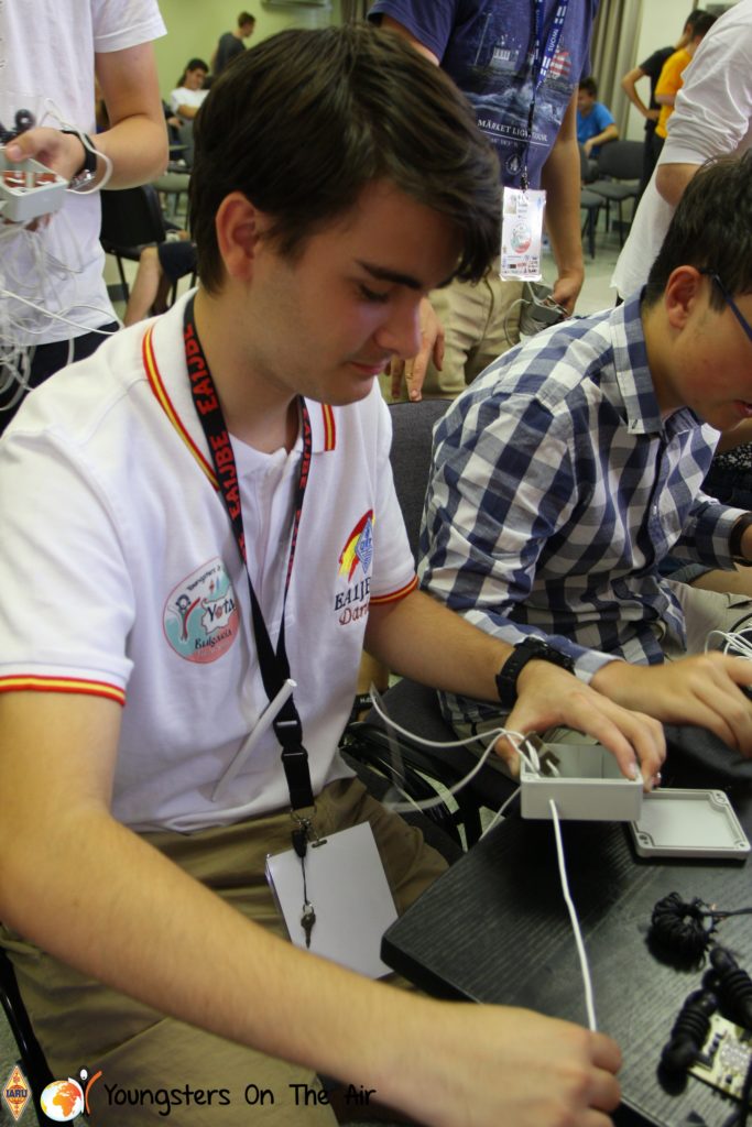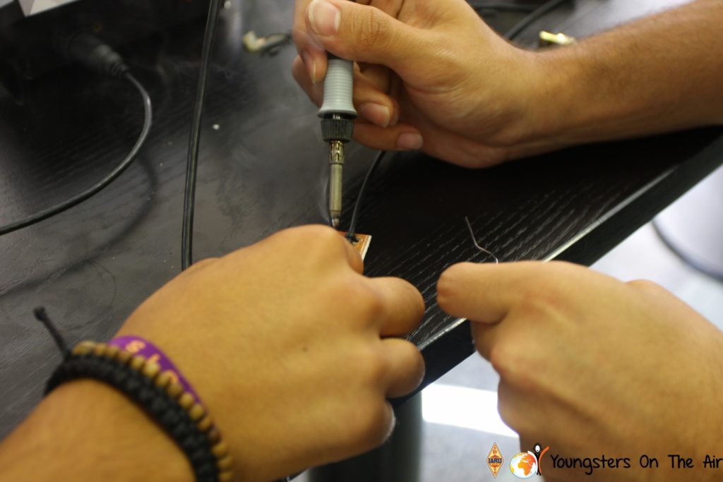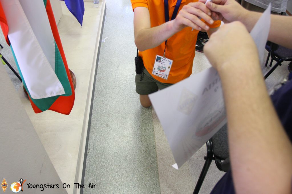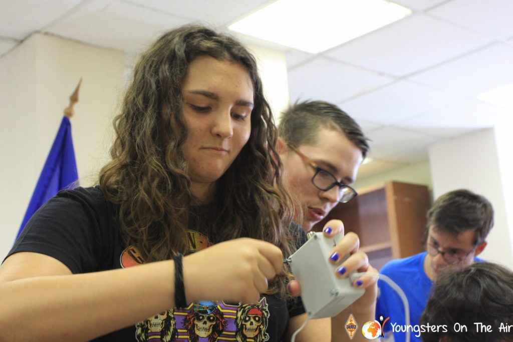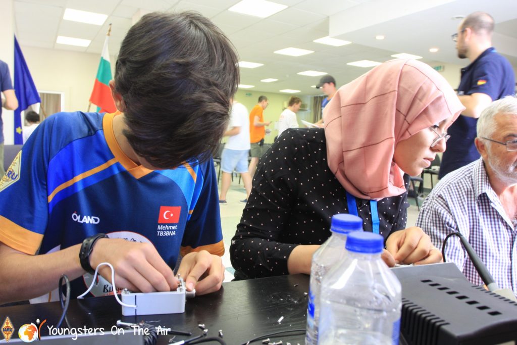 The last full day of the 2019 YOTA summer camp began with the last session of teams presenting the youth activities they have done in the last year and their plans for the next year. For the morning workshop the teams were split into two groups again, whilst one group built a vhf antenna and learnt about the theory behind it, the other learnt about ropes and knots and practiced a number of useful knots, fore example for putting up antennas at field days . After lunch the hands on workshops were continued with building an HF antenna, as before the youngsters also learnt about the theory behind how this antenna works. The wire dipole for the 20 metre band is a great tool for field days, SOTA activations and more. Furthermore this antenna enables a lot of youngsters who do not have access to other antennas to get on the air from their home. Combining the theory with hands on building made it very interesting and more intuitive.
